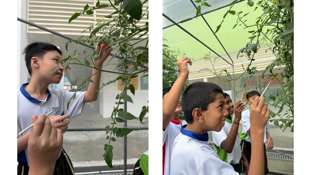 The school also taps on an array of modern farming systems to engage students. At Primary 5, they experience first-hand the pollination and fertilization process as the school grows fruiting plants using the school’s in-house Nutrient Film Technique system. At Primary 6, they learn about energy transfer through the school’s integrated farming system (Aquaponics) where fish waste is utilized to grow vegetables. The system is also powered via solar panels.