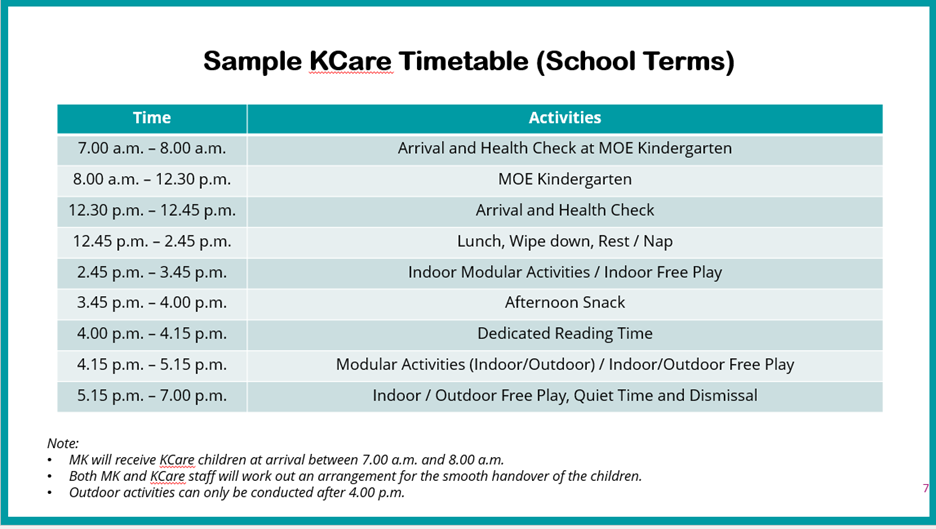 This is a sample timetable on what your child will do in a day if he/she takes up our Full Day Programme.