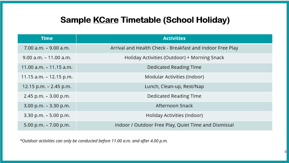KCare provides care services, and time and space for children to play, explore and discover through specially designed environments with carefully chosen resources.
